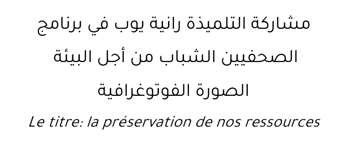 مشاركة التلميذة رانية يوب في برنامج الصحفيين الشباب من أجل البيئة