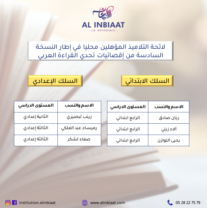 لائحة التلاميذ المؤهلين محليا في إطار النسخة السادسة من إقصائيات تحدي القراءة العربي